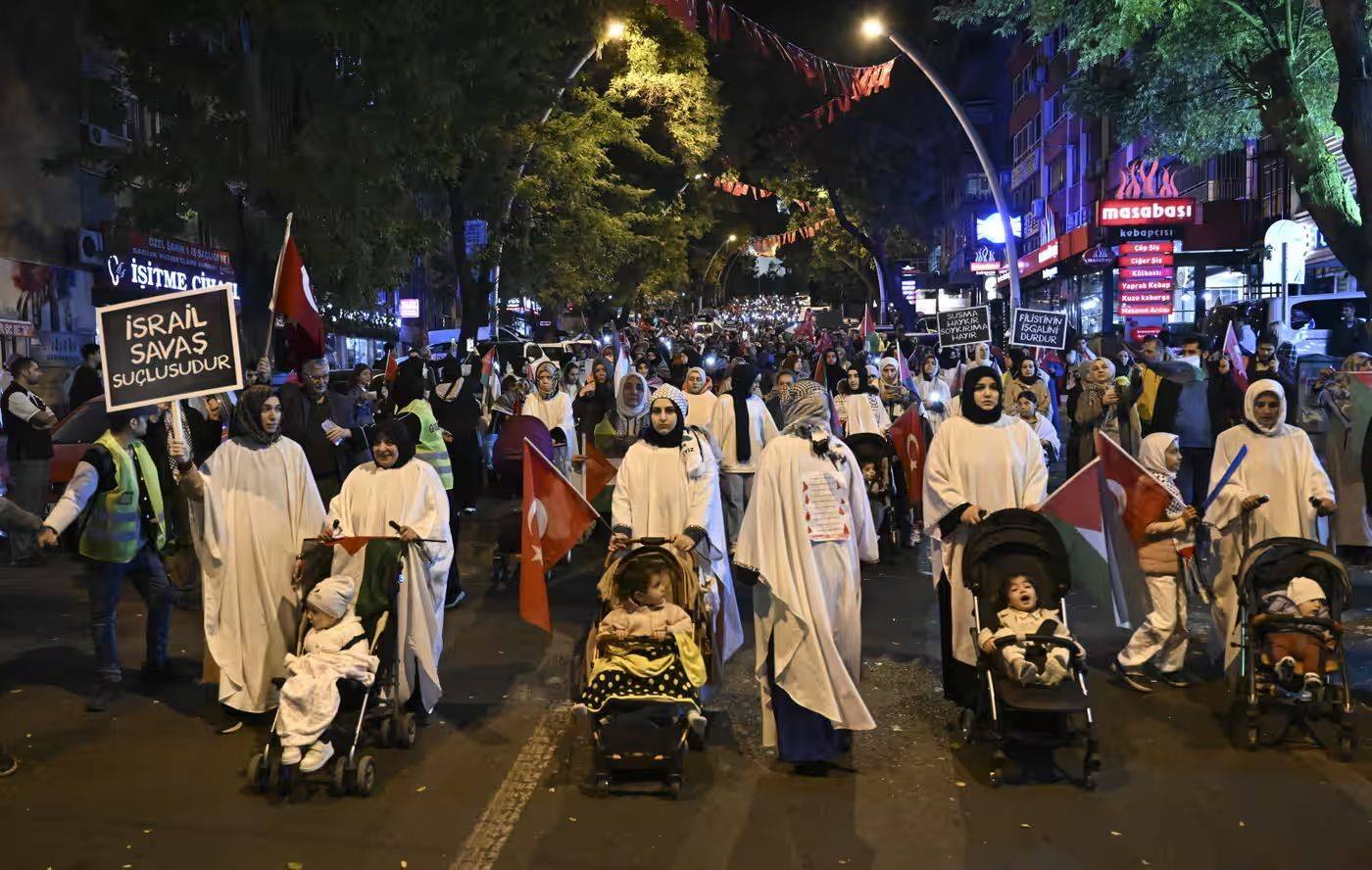 當?shù)貢r間11日,民眾在土耳其安卡拉參加支持巴勒斯坦游行 圖源:《衛(wèi)報》