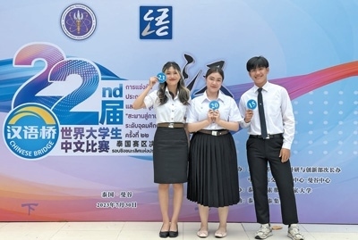 語言是了解一個國家最好的鑰匙。當前,越來越多的外國人通過學習中文和參加“漢語橋”交流項目,了解到豐富多彩、立體全面的中國。圖為今年7月,部分參加第二十二屆“漢語橋”世界大學生中文比賽泰國賽區(qū)決賽的比賽選手在現(xiàn)場合影留念。