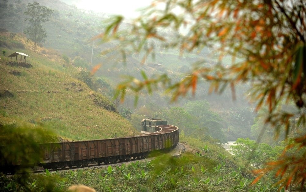 這是行駛在滇越鐵路云南省屏邊縣境內(nèi)的貨運列車(2012年3月9日攝)。