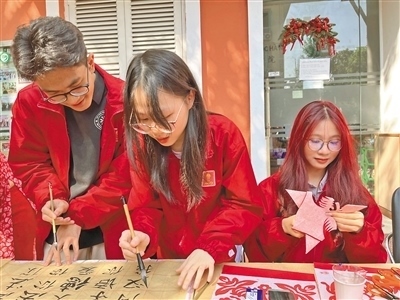 12月8日,在河內(nèi)大學孔子學院舉行的文化體驗活動中,越南大學生體驗中國書法和剪紙。本報記者 張遠南攝