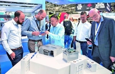 9月5日,人們?cè)诘聡?guó)慕尼黑國(guó)際車展上與中國(guó)展商洽談。新華社發(fā)
