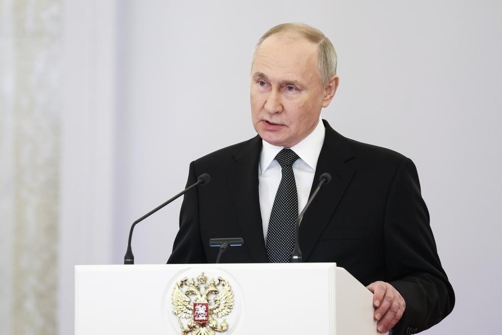 2023年12月8日,俄羅斯總統(tǒng)普京在莫斯科克里姆林宮出席“祖國英雄日”慶祝儀式。新華社/塔斯社