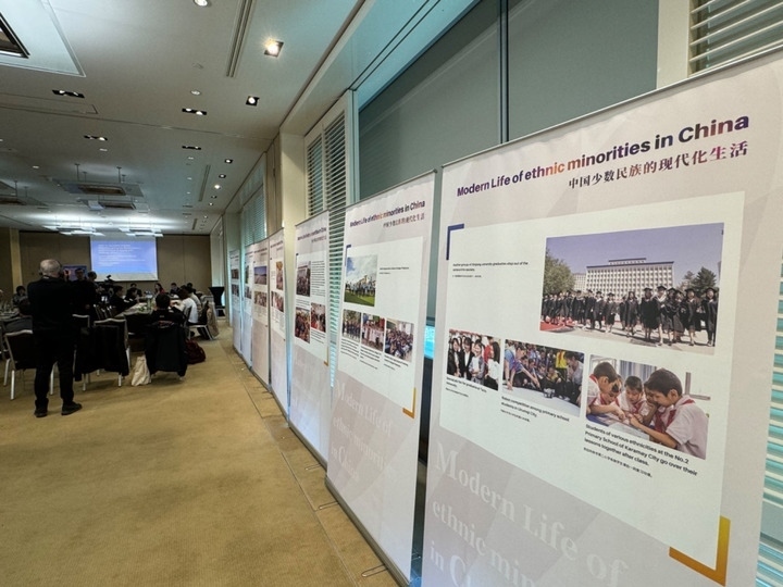 ?3月14日,由中國人權(quán)研究會(huì)主辦的“現(xiàn)代化發(fā)展中的少數(shù)民族受教育權(quán)——以中國西藏和新疆為例”主題邊會(huì)在瑞士日內(nèi)瓦舉行。圖為會(huì)議現(xiàn)場(chǎng)舉辦的“中國少數(shù)民族的現(xiàn)代化生活”圖片展。新華社記者石松攝