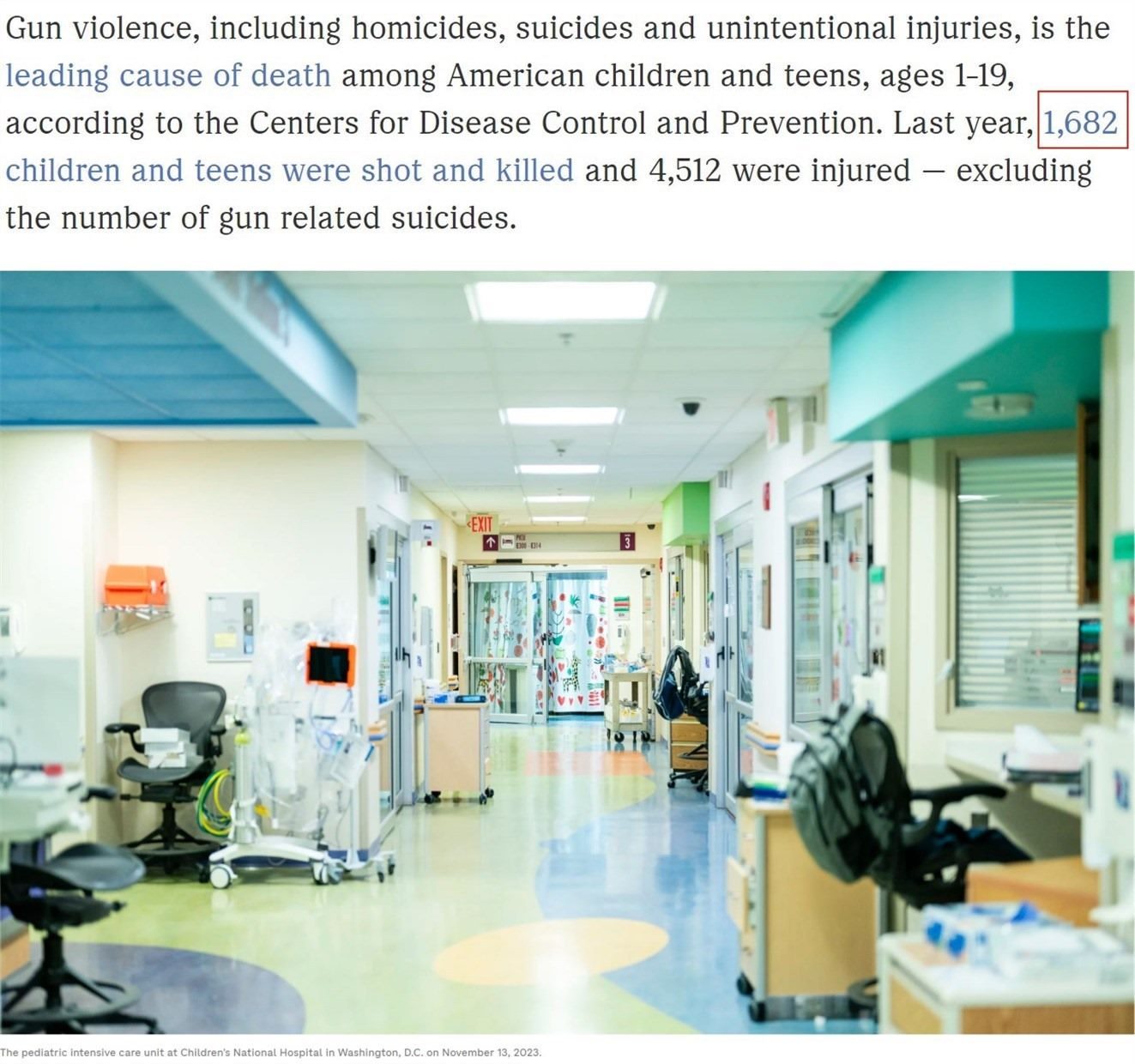 美國疾控中心的數(shù)據(jù)顯示,2023年全年,美國兒童和青少年中共有至少1682人死于槍擊,另有4512人受傷。這還不包括與槍支相關(guān)的自殺人數(shù)。