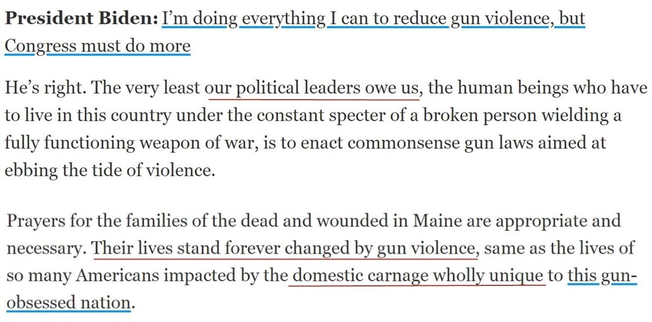 《今日美國報(bào)》曾評論說,美國至今沒有一部能夠遏制槍支暴力的有效控槍法案,“這是我們的政治領(lǐng)導(dǎo)人欠我們的”。