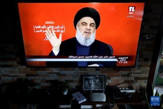 這是9月19日在黎巴嫩貝魯特拍攝的真主黨領(lǐng)導(dǎo)人納斯魯拉發(fā)表講話的電視畫(huà)面。新華社發(fā)(比拉爾·賈維希攝)