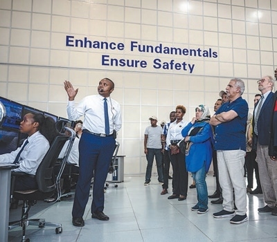 2023年10月6日,多國駐肯使節(jié)在肯尼亞內羅畢的蒙內鐵路內羅畢站調度中心參觀。新華社記者 王冠森攝