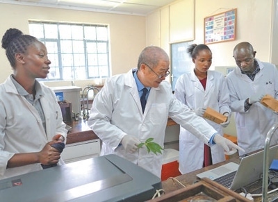 中肯作物分子生物學(xué)“一帶一路”聯(lián)合實(shí)驗(yàn)室成立于2016年,匯聚了中國和肯尼亞兩國農(nóng)技專家和人才,利用先進(jìn)的分子生物學(xué)技術(shù),進(jìn)行作物的抗性基因檢測,篩選和培育更優(yōu)良的種子?!斑^去,肯尼亞運(yùn)用的農(nóng)業(yè)、園藝技術(shù)都來自歐洲,大農(nóng)場的經(jīng)理都是歐洲人;如今,在中國的幫助下,我們自己也掌握了技術(shù)?!笨夏醽嗈r(nóng)業(yè)專家理查德·穆盧瓦感嘆。