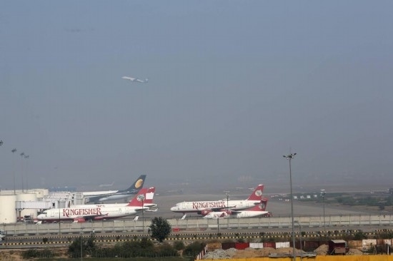 2013年2月1日,在印度首都新德里,飛機??吭谟⒌侠じ实貒H機場。新華社記者李毅剛攝