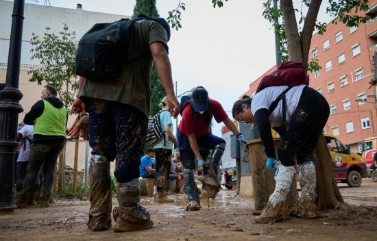 11月3日,志愿者在西班牙巴倫西亞拉托雷地區(qū)清理淤泥。新華社發(fā)(巴勃羅·莫拉諾攝)