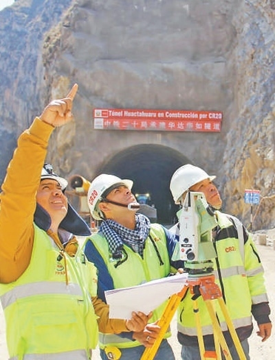 中秘建設(shè)者在中鐵二十局承建的秘魯安第斯國家公路施工現(xiàn)場。張 魏攝