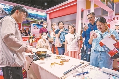 第三十屆泰國國際旅游展日前在曼谷舉行,吸引了來自不同國家和地區(qū)的680多個旅游機(jī)構(gòu)、企業(yè)參展。中國以主賓國身份受邀參展,是展位最多的國家。本屆展會上,中國展區(qū)以“你好!中國”為主題,來自貴州、河南、浙江等6個省的文旅機(jī)構(gòu)和國航、南航等12家中國航司共同展示了中國最新的優(yōu)質(zhì)旅游產(chǎn)品服務(wù)及精品線路。中國展區(qū)還設(shè)置了剪紙、面塑、糖畫等傳統(tǒng)技藝展示項(xiàng)目。