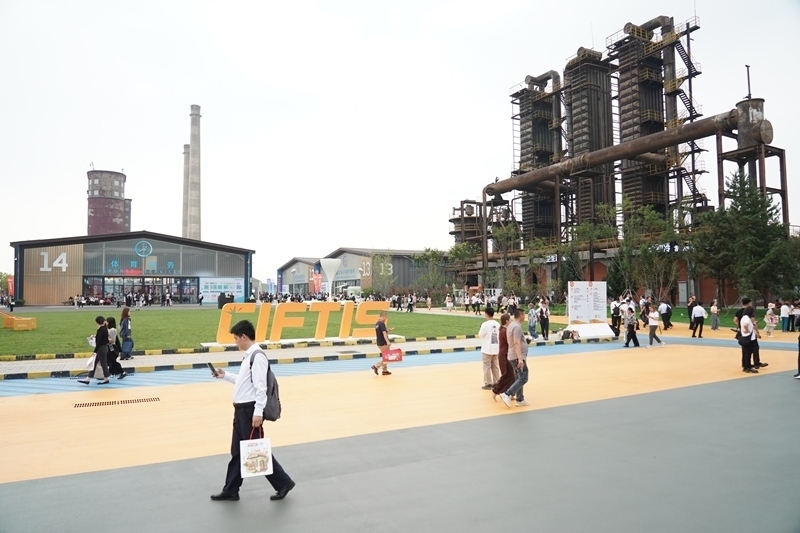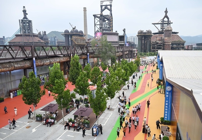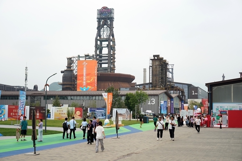 9月10日,在首鋼園四高爐,參會人員進(jìn)出會議區(qū)。