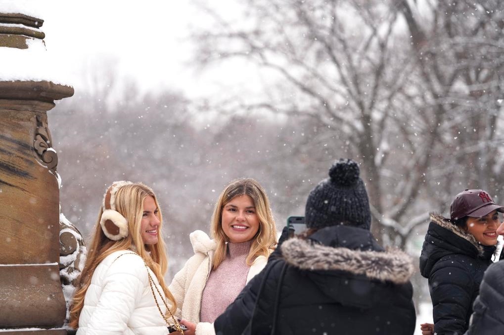 12月27日,在美國(guó)紐約中央公園,人們?cè)谘┲辛粲?。新華社記者張鳳國(guó)攝
