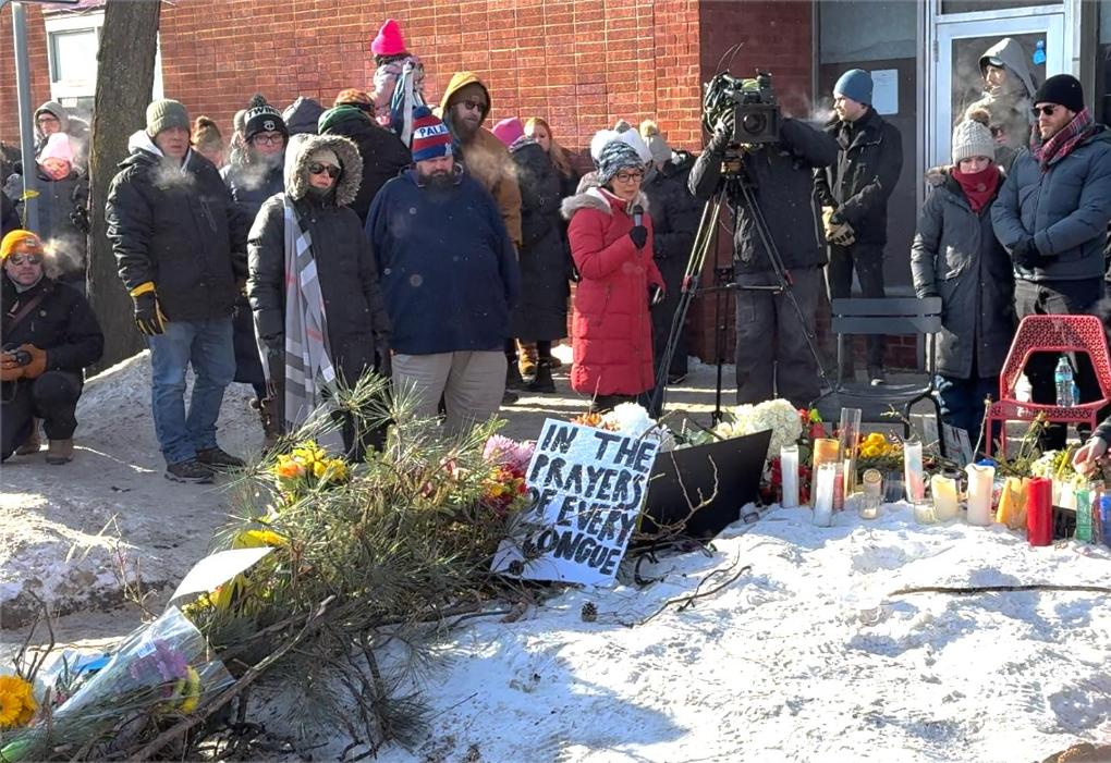 1月25日,在美國明尼蘇達州明尼阿波利斯,人們悼念槍擊事件遇難者(手機照片)。圖源:新華社