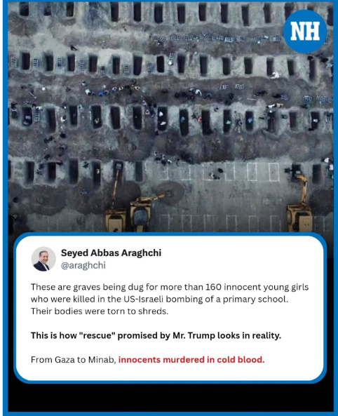 據(jù)報道,阿拉格齊在貼文中表示,“這些墳?zāi)梗菫榱寺裨嵩诿酪月?lián)合轟炸小學(xué)事件中遇難的160多名無辜女孩而挖的。她們的遺體支離破碎。”