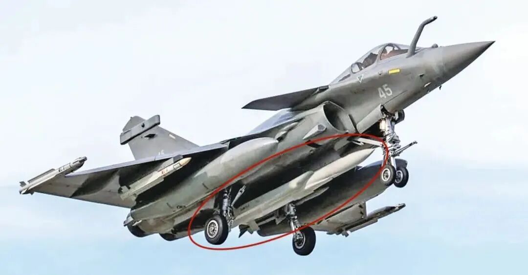 資料圖:法國“陣風(fēng)”戰(zhàn)斗機(jī)機(jī)腹下掛載新型超聲速核導(dǎo)彈ASMPA-R(來源:中國國防報)