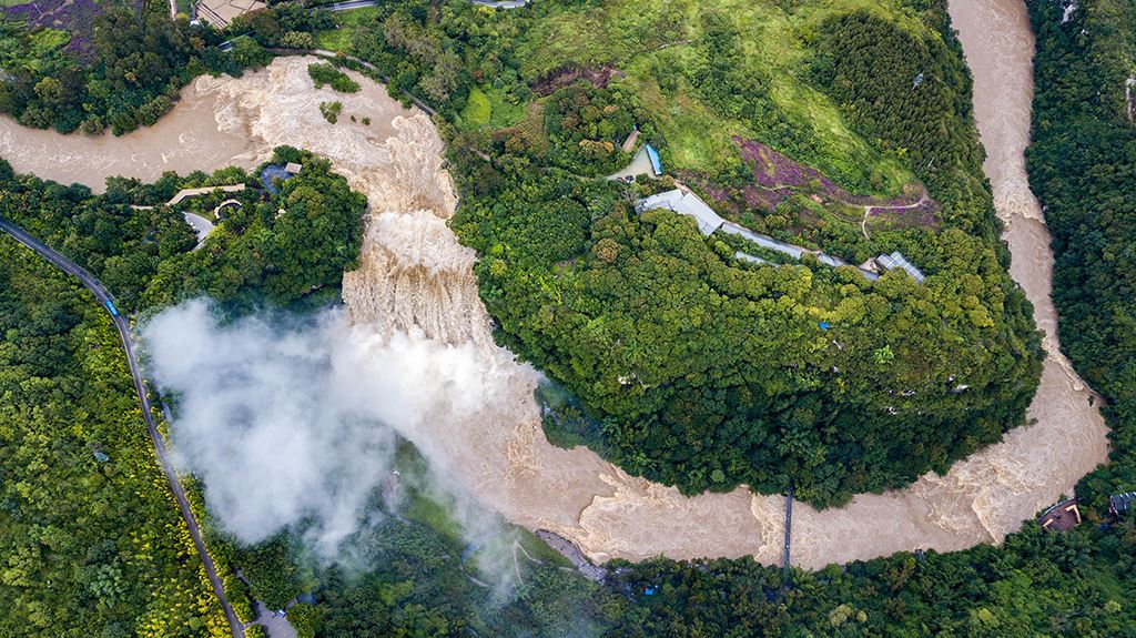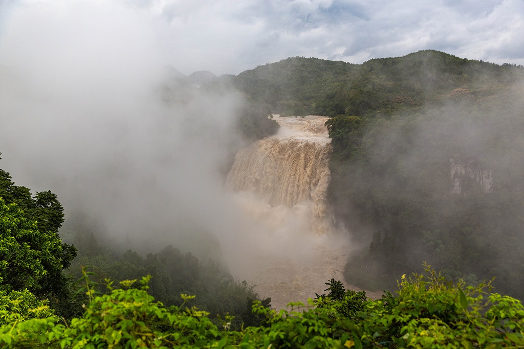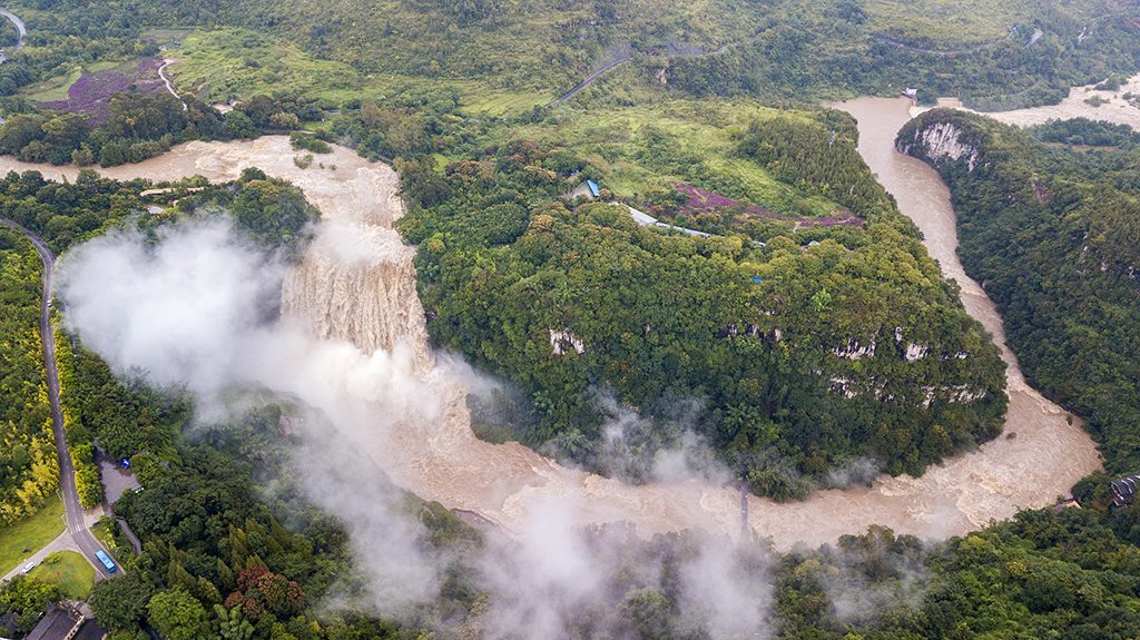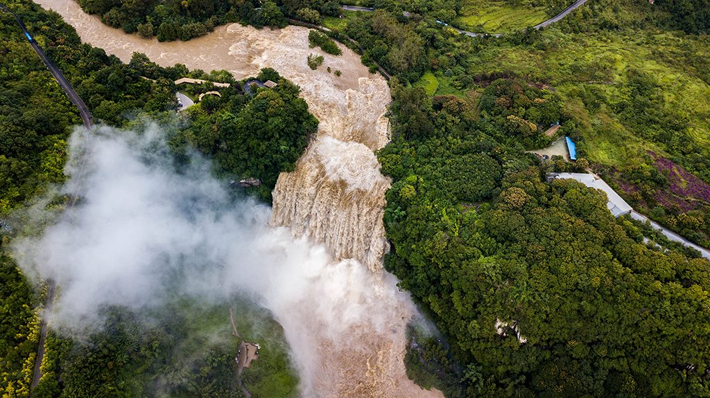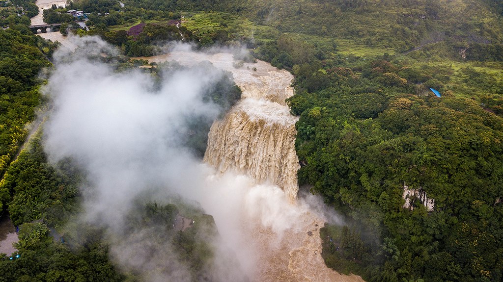 受強(qiáng)降雨影響,貴州黃果樹(shù)瀑布迎來(lái)2020年入汛以來(lái)最大水量,黃果樹(shù)瀑布水勢(shì)磅礴。陳熙/攝