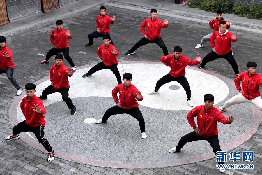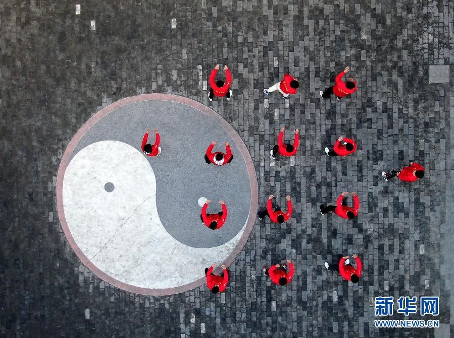 學(xué)員在河南省焦作市溫縣陳家溝的一個(gè)拳館內(nèi)練拳(無(wú)人機(jī)照片,12月14日攝)。