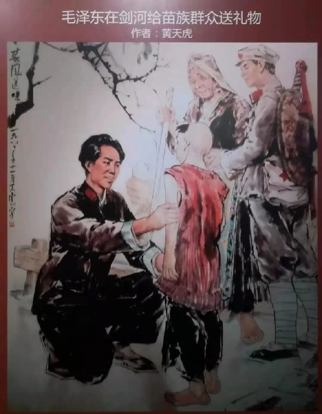“當(dāng)我等行經(jīng)劍河縣附近之某村落時(shí),見路邊有一老婦與一童子,身穿單衣,倒于路邊,氣息尚存……正詢問間,赤軍領(lǐng)袖毛澤東至,告以老婦所言。當(dāng)時(shí)毛即時(shí)從身上脫下毛線衣一件及行李中取出被單一條,授予老婦,并命人給以白米一斗。老婦則連連道謝含笑而去?!?/p>