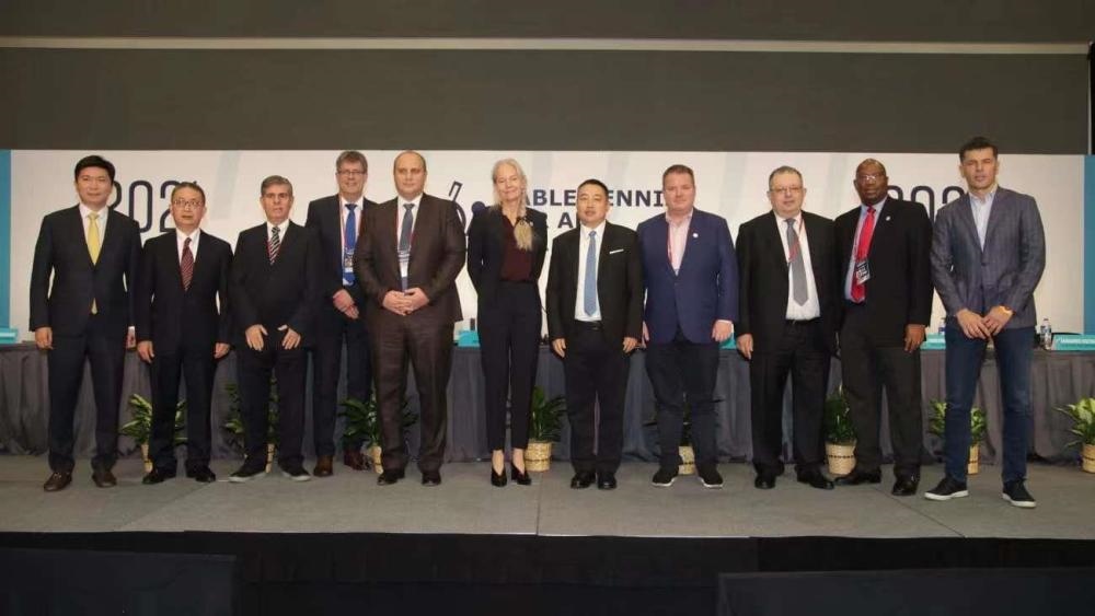 當?shù)貢r間11月24日,2021國際乒聯(lián)代表大會在美國休斯敦召開。WTT世界乒乓球職業(yè)大聯(lián)盟理事會主席、中國乒協(xié)主席劉國梁成功當選國際乒乓球聯(lián)合會執(zhí)行副主席。(記者 許弢)