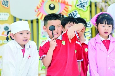 浙江湖州市長興縣開發(fā)區(qū)中心幼兒園內(nèi),孩子們在進(jìn)行視力檢測。吳拯攝/光明圖片