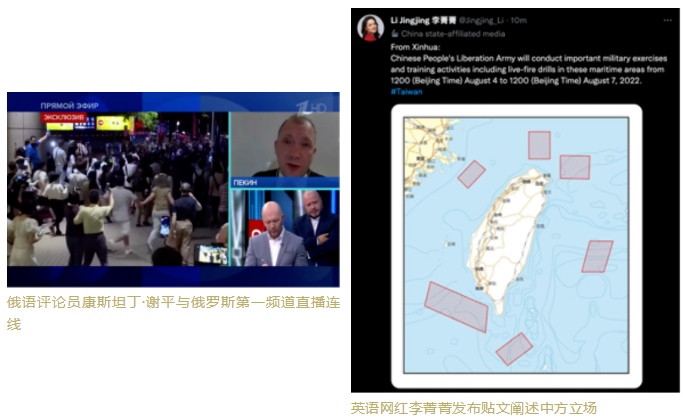 總臺(tái)德語(yǔ)、塞爾維亞語(yǔ)、阿爾巴尼亞語(yǔ)網(wǎng)紅主播通過(guò)網(wǎng)紅產(chǎn)品或與對(duì)象國(guó)家主流媒體連線積極發(fā)聲。通過(guò)《快閻快語(yǔ)--佩洛西竄訪臺(tái)灣:錯(cuò)誤時(shí)間的錯(cuò)誤選擇》、《東部戰(zhàn)區(qū)已在臺(tái)島周?chē)_(kāi)展聯(lián)合軍事行動(dòng)》等一系列新聞產(chǎn)品闡明我方立場(chǎng),介紹中方反制措施的合理性與必要性。