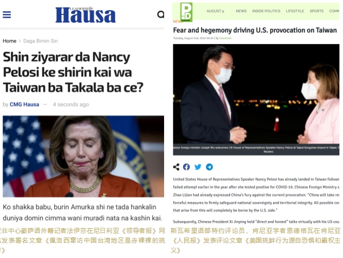 亞非中心土耳其、希伯來(lái)語(yǔ)、豪薩語(yǔ)、尼泊爾語(yǔ)、蒙古語(yǔ)等多語(yǔ)種主播、評(píng)論員和網(wǎng)紅積極在多家外媒發(fā)聲,接受了包括以色列電視臺(tái)、土耳其AHABER新聞臺(tái)、土耳其TGRT電視臺(tái)、土耳其新聞電視臺(tái)等多家國(guó)際媒體的采訪連線,同時(shí)多名外籍記者、海外特約評(píng)論員在尼日利亞《領(lǐng)導(dǎo)者報(bào)》網(wǎng)站、尼泊爾《光線新聞網(wǎng)》、肯尼亞《人民報(bào)》、蒙古國(guó)媒體SONIN.MN等對(duì)象國(guó)主流媒體發(fā)表評(píng)論及署名文章,對(duì)外闡釋中方立場(chǎng)和反制措施的合理性、正當(dāng)性,介紹臺(tái)灣問(wèn)題歷史經(jīng)緯,揭批美國(guó)在臺(tái)灣問(wèn)題上的背信棄義。