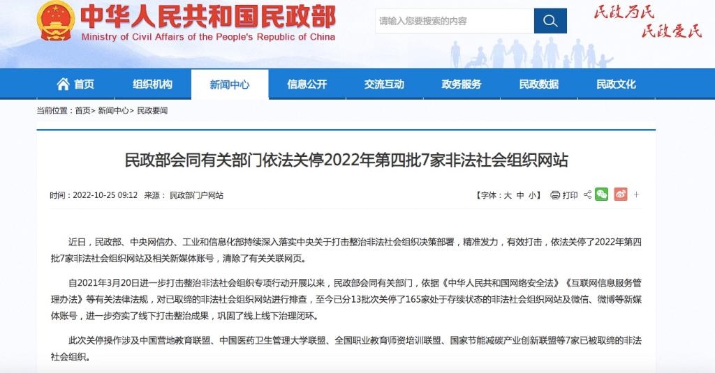此次關(guān)停操作涉及中國(guó)營(yíng)地教育聯(lián)盟、中國(guó)醫(yī)藥衛(wèi)生管理大學(xué)聯(lián)盟、全國(guó)職業(yè)教育師資培訓(xùn)聯(lián)盟、國(guó)家節(jié)能減碳產(chǎn)業(yè)創(chuàng)新聯(lián)盟、中國(guó)監(jiān)督網(wǎng)浙江象山辦事處、中國(guó)煤礦創(chuàng)傷學(xué)會(huì)華北分會(huì)、全心犬意犬類領(lǐng)養(yǎng)中心等7家已被取締的非法社會(huì)組織。