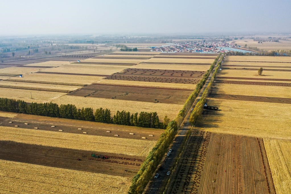 10月25日,在內(nèi)蒙古自治區(qū)通遼市開魯縣東風(fēng)鎮(zhèn),一些地塊上的玉米和紅干椒已經(jīng)收割結(jié)束。(無(wú)人機(jī)照片)新華社記者連振 攝