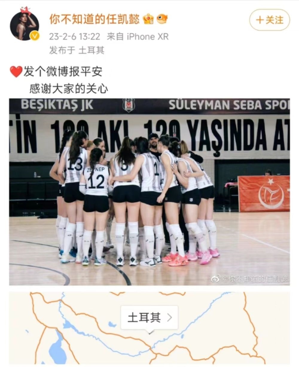 新華社北京2月7日電 土耳其發(fā)生強(qiáng)烈地震后,效力于土耳其職業(yè)聯(lián)賽的中國女足運(yùn)動(dòng)員李佳悅、男足運(yùn)動(dòng)員吳少聰,以及女排運(yùn)動(dòng)員任凱懿先后在社交媒體平臺(tái)上報(bào)平安。