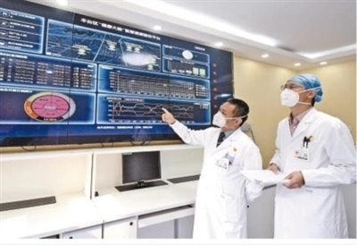 北京市豐臺(tái)區(qū)馬家堡社區(qū)衛(wèi)生服務(wù)中心的醫(yī)生在應(yīng)用“健康大腦”智能監(jiān)測系統(tǒng)了解居民健康狀況。新華社記者 李 欣攝
