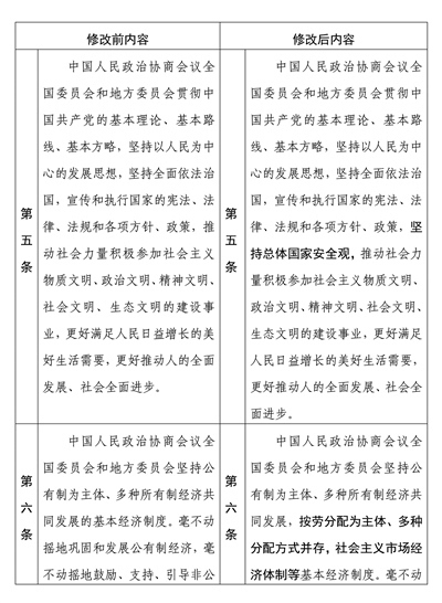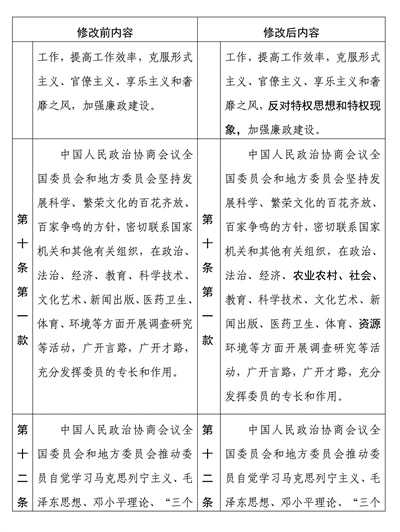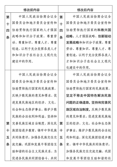 中國(guó)人民政治協(xié)商會(huì)議章程修改前后內(nèi)容對(duì)照表