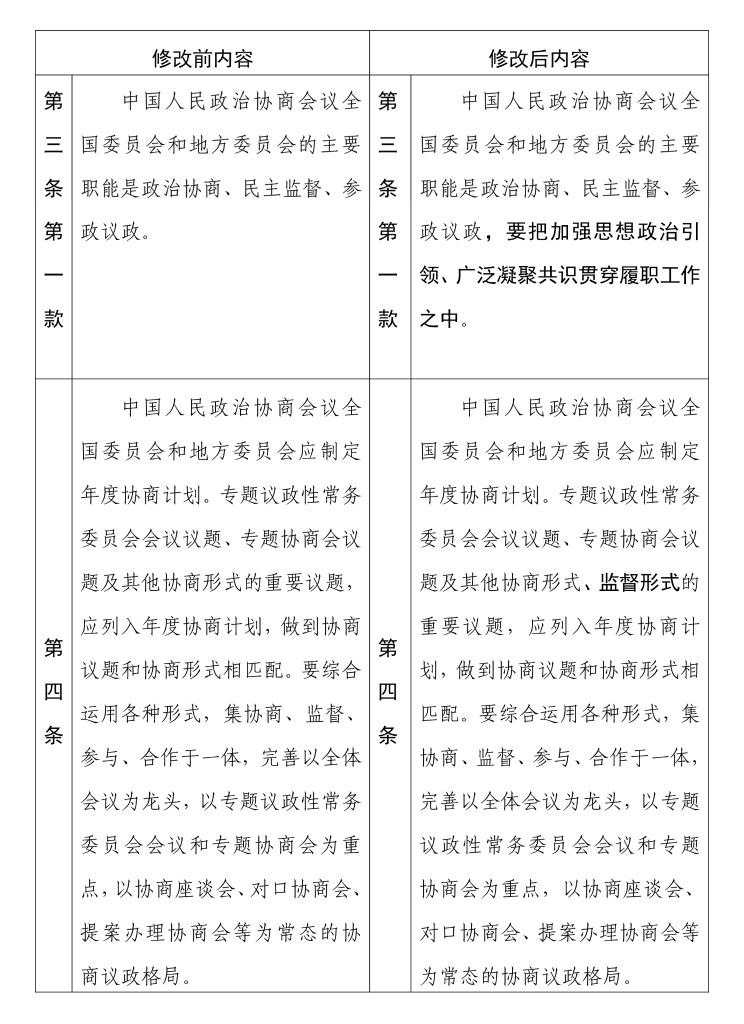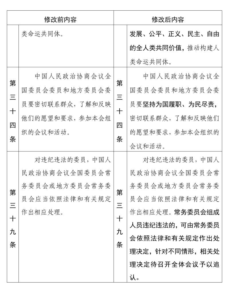 中國人民政治協(xié)商會議章程 修改前后內(nèi)容對照表(3) 新華社發(fā)