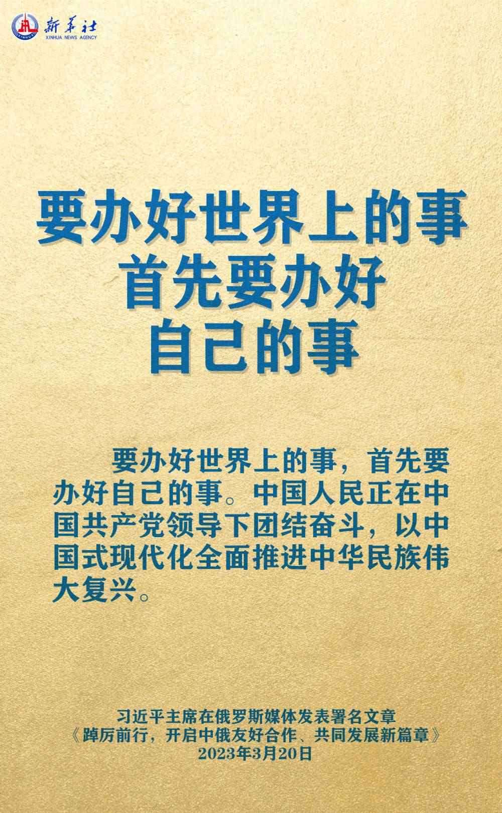 3月20日,在赴莫斯科對(duì)俄羅斯聯(lián)邦進(jìn)行國(guó)事訪問(wèn)之際,國(guó)家主席習(xí)近平在《俄羅斯報(bào)》和俄新社網(wǎng)站發(fā)表題為《踔厲前行,開(kāi)啟中俄友好合作、共同發(fā)展新篇章》的署名文章。