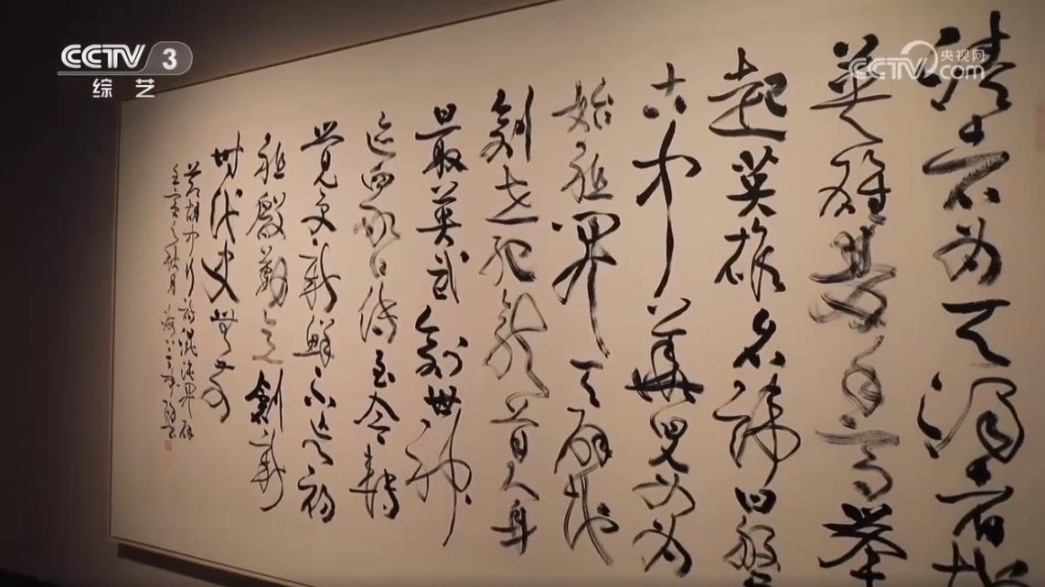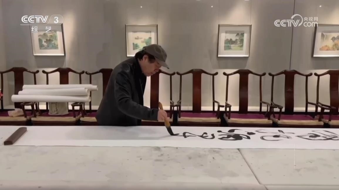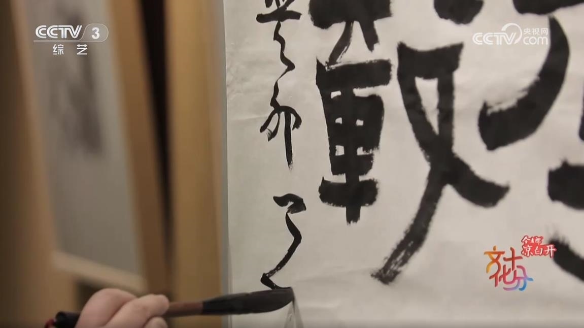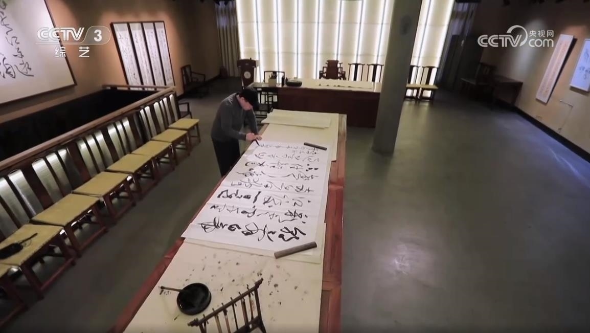 中國書法家協(xié)會草書專業(yè)委員會副主任、上海市書法家協(xié)會主席 丁申陽:武打的場面,他(導(dǎo)演)說后面一堵墻,你可以用草書來書寫,掛在后面作背景。他說這個草書跟武術(shù)其實有相同點,都是動態(tài)的美,也有左右避讓的關(guān)系,長短的協(xié)調(diào)的關(guān)系,還有重輕的關(guān)系,矛盾平衡之間尋找一個點,這個點就是協(xié)調(diào),協(xié)調(diào)就是美的。