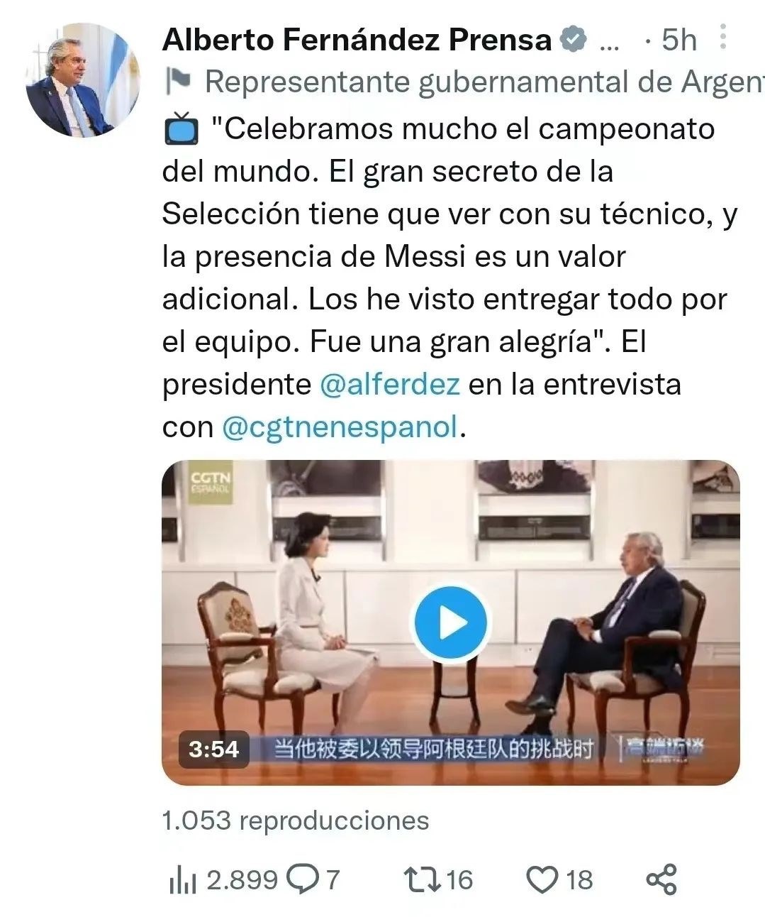 △阿根廷總統(tǒng)費(fèi)爾南德斯個(gè)人賬號(hào)發(fā)布十余條推文展示專(zhuān)訪(fǎng)內(nèi)容