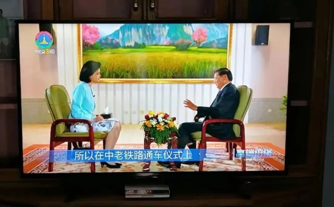 △專(zhuān)訪(fǎng)老撾國(guó)家主席通倫的節(jié)目在老撾國(guó)家電視臺(tái)播出