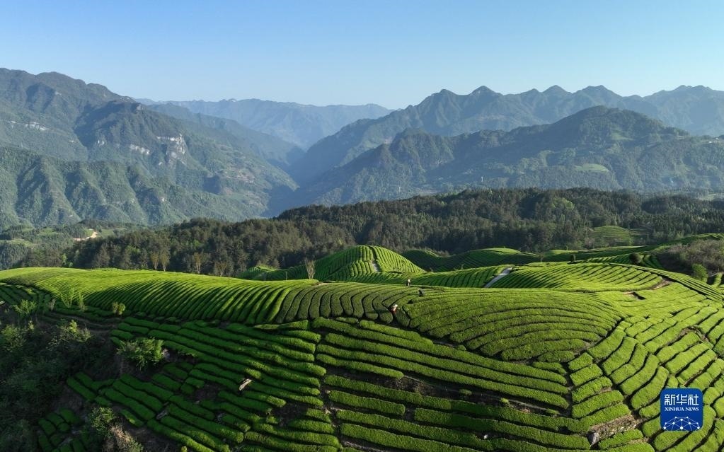 4月16日拍攝的鶴峰縣走馬鎮(zhèn)木耳山茶園(無人機照片)。
