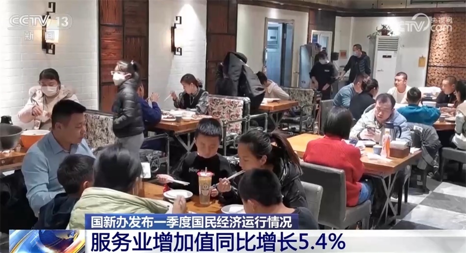 服務(wù)業(yè)增速明顯回升。一季度,服務(wù)業(yè)增加值同比增長(zhǎng)5.4%,高于上年四季度3.1個(gè)百分點(diǎn)。前期受疫情影響較大的接觸型、聚集型服務(wù)業(yè)回升尤為突出。