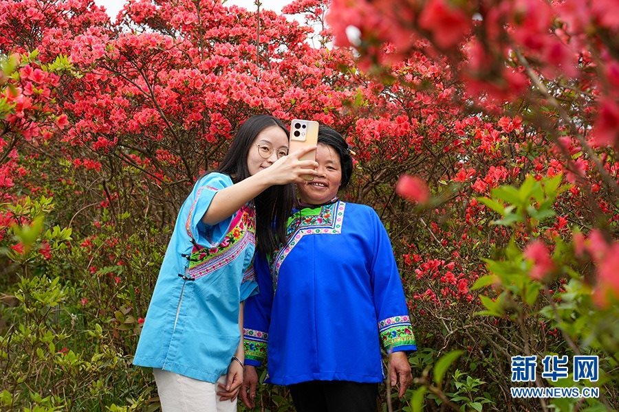 當(dāng)日,在貴州省黔東南苗族侗族自治州丹寨縣縣城邊海拔1400多米的龍泉山,萬畝杜鵑花競相綻放,山谷間、棧道旁、懸崖上,一顆顆、一簇簇、一朵朵杜鵑花迎風(fēng)搖曳,形成浩瀚花海,引來眾多游客登高望遠(yuǎn),飽覽靈山秀水之美。   新華網(wǎng)發(fā)(龍建睿 攝)