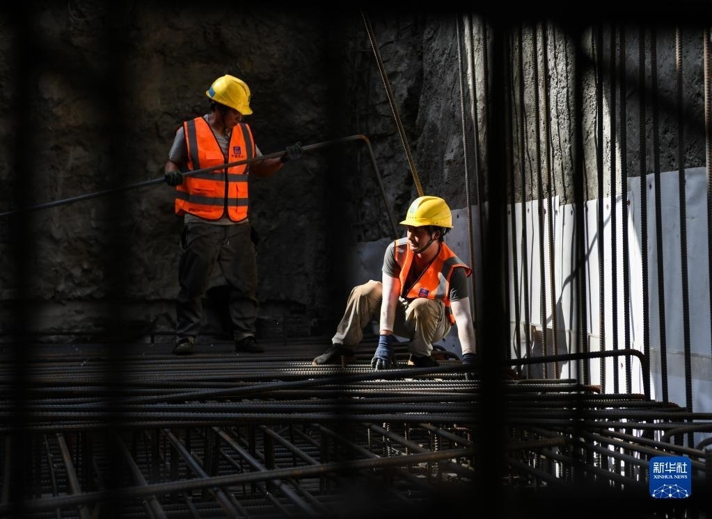 5月1日,中鐵建工集團工人在貴州貴安新區(qū)貴安站擴建項目工地施工。