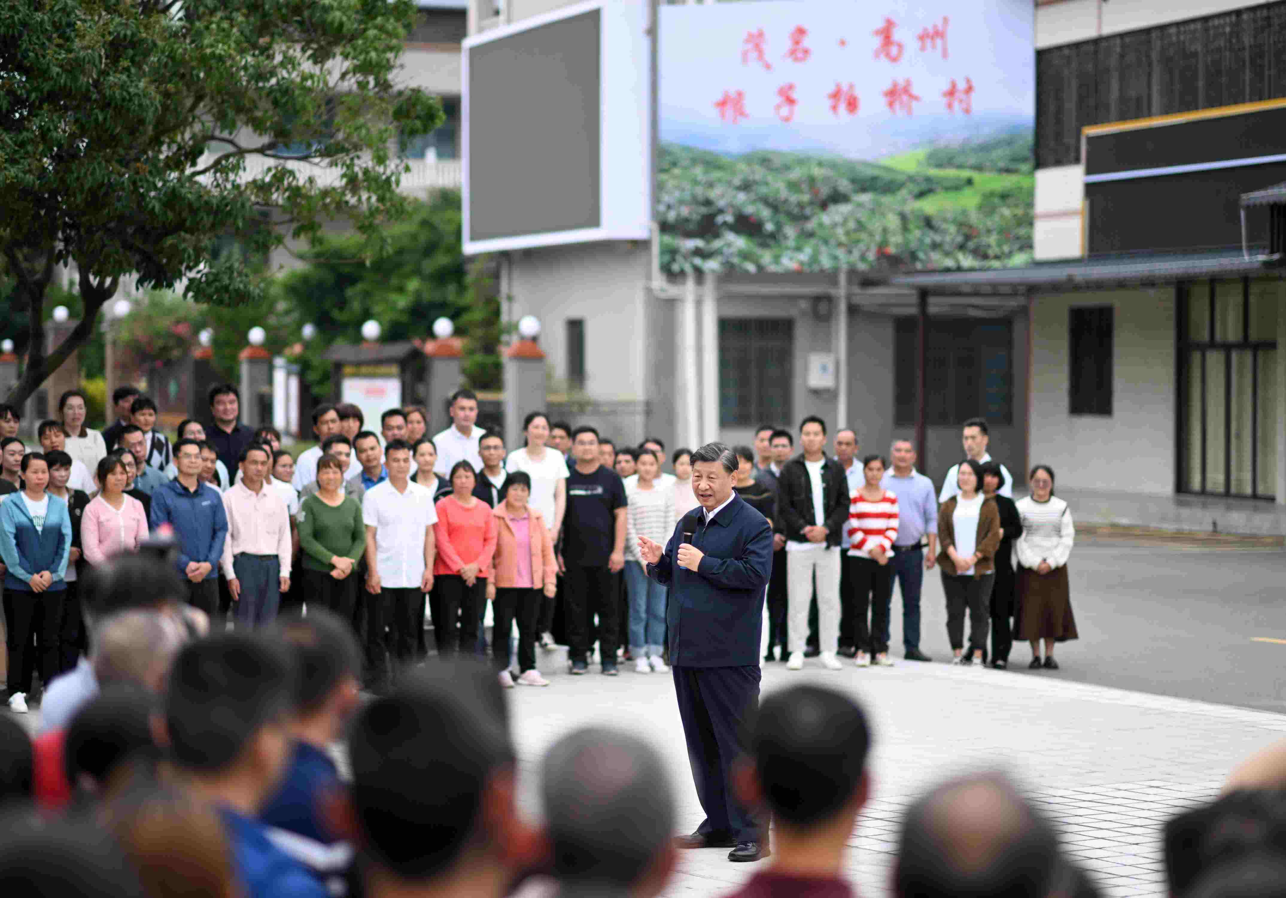 △4月11日,習(xí)近平總書(shū)記在廣東茂名高州市根子鎮(zhèn)柏橋村同村民親切交流。