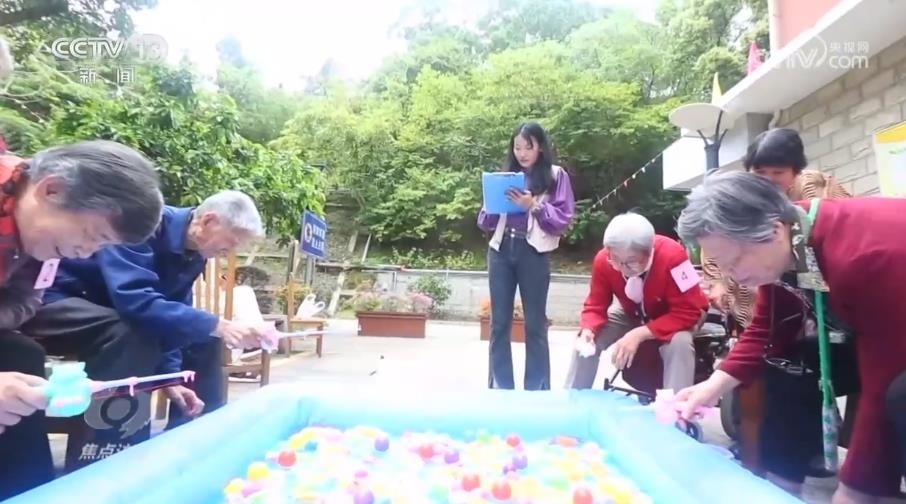 充氣魚池、塑料魚、網兜、小桶,在福利院的大院里,一場趣味釣魚大賽正在緊張進行。這個披肩長發(fā)、特別愛笑的裁判是老人們的“開心果”,也是福利院的“90后”社工朱小冉。和護理員楊愛紅不同,朱小冉的主要工作通俗來說,就是怎么讓老人們過得更樂呵。