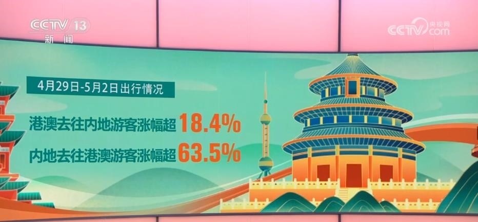由港澳去往內(nèi)地的游客規(guī)模相比節(jié)前一周日均漲幅超18.4%,而由內(nèi)地去往港澳的游客規(guī)模相比節(jié)前一周日均漲幅超63.5%。