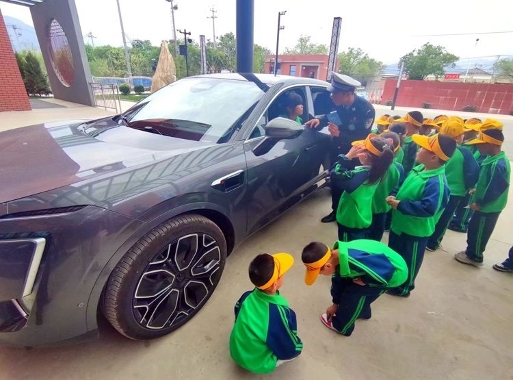 學(xué)警教同學(xué)識別交通道路標志牌。