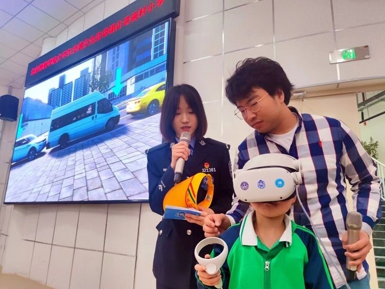 今天(5月4日)是五四青年節(jié),北京警察學(xué)院大學(xué)生交通安全宣講團來到昌平流村小學(xué),開展“大學(xué)生牽手小學(xué)生,知危險會避險”的主題宣傳活動,通過文藝表演、VR實景體驗、情景劇以及多種交通安全體驗類的游戲講解交通安全知識,以這種特殊的方式慶祝自己的節(jié)日。