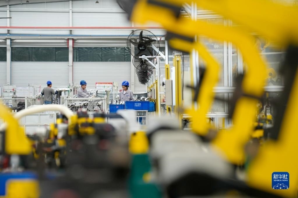 5月4日,在浙江省湖州市長(zhǎng)興經(jīng)濟(jì)技術(shù)開發(fā)區(qū)一家汽車部件有限公司,工人生產(chǎn)新能源汽車配件。