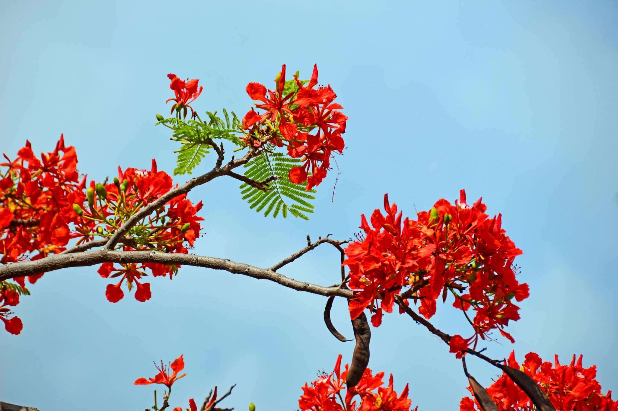 2023年5月9日,三亞,鳳凰路美麗之冠旁,一株株鳳凰樹綻放出紅艷艷的花朵。視覺中國(guó)