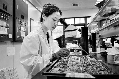 2022年8月7日,浙江農(nóng)林大學(xué)現(xiàn)代農(nóng)學(xué)院學(xué)生在實(shí)驗(yàn)室開展科學(xué)研究。陳勝偉攝/光明圖片